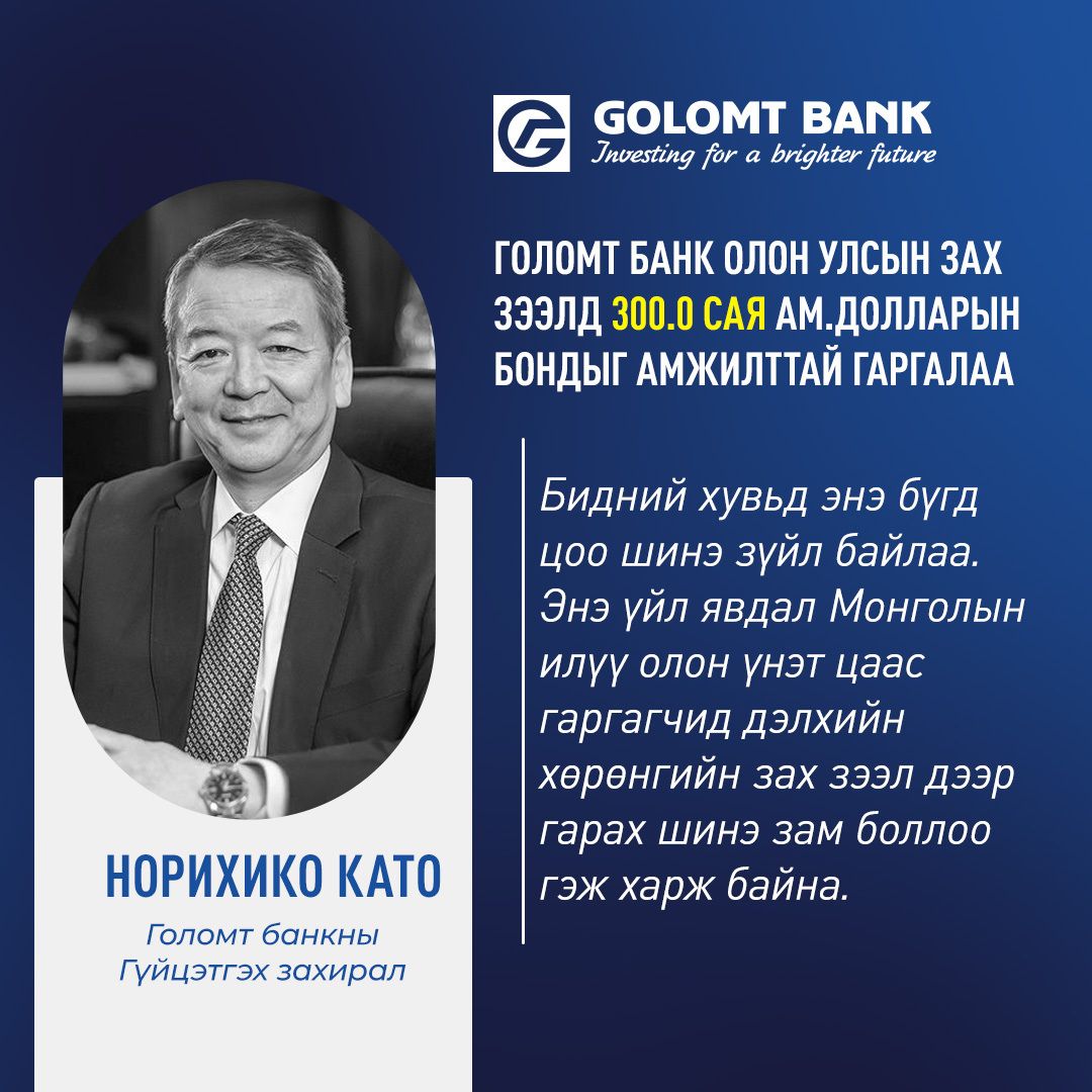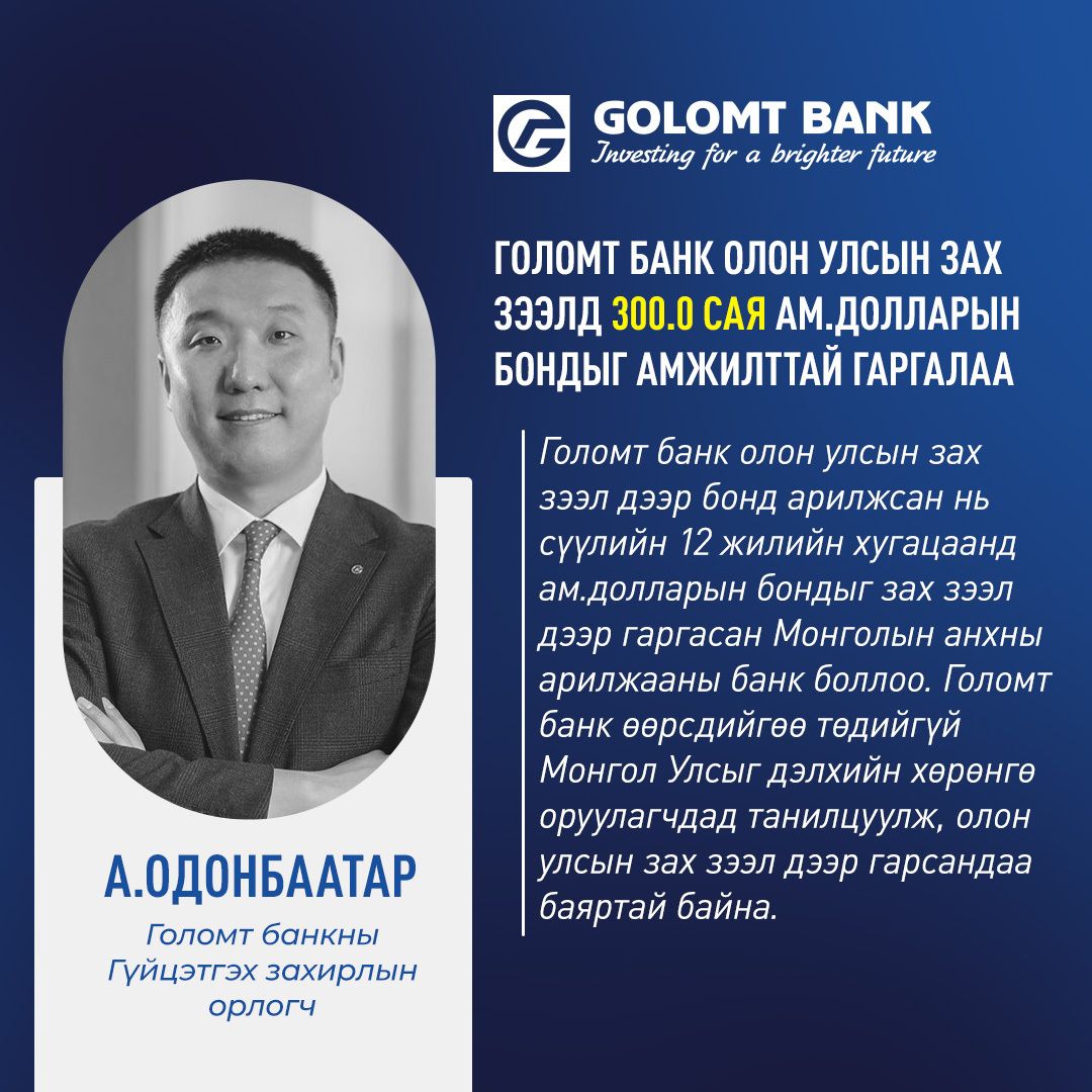 ГОЛОМТ БАНК 💵300.0 САЯ АМ.ДОЛЛАРЫН БОНДЫГ АМЖИЛТТАЙ ГАРГААД БАЙНА