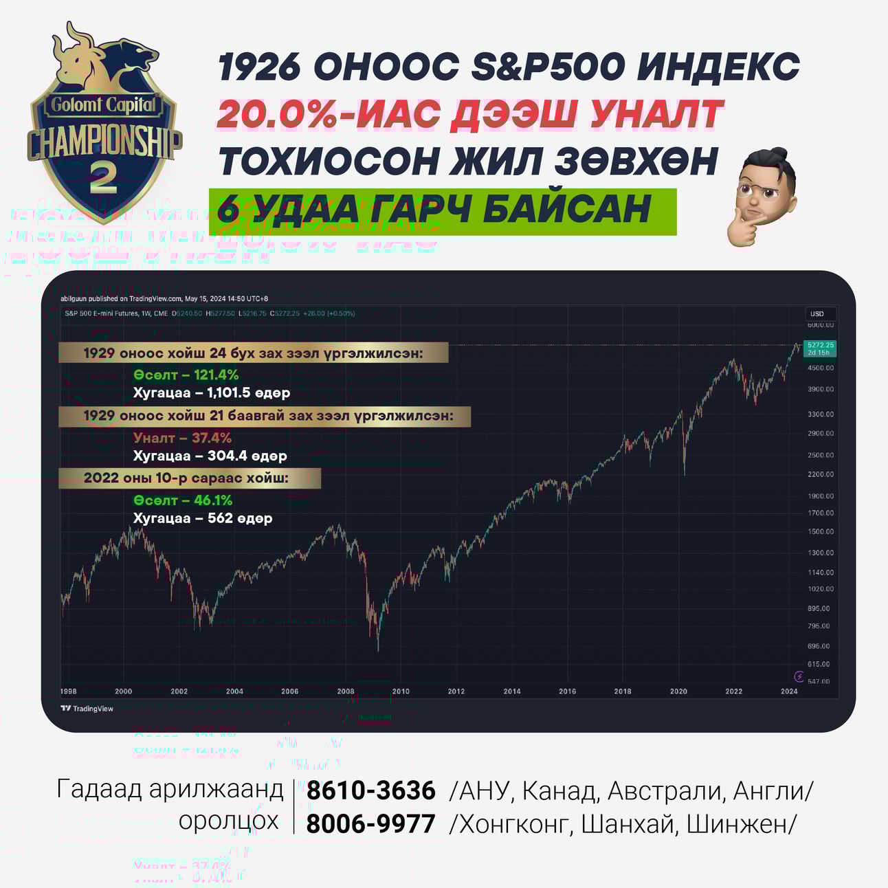 📢S&P500 ИНДЕКСИЙН ХАНШ 1950 ОНООС ХОЙШ 6 УДАА УНАСАН