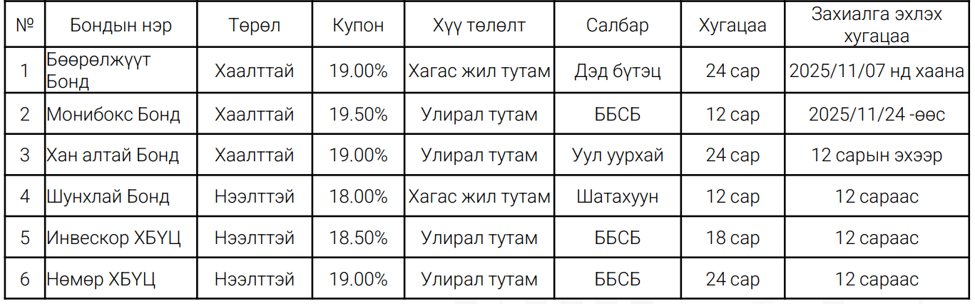 Монгол Улсын Засгийн газрын 📅 бондуудын өгөөж 5.42%-6.20% хооронд хэлбэлзэж байна.