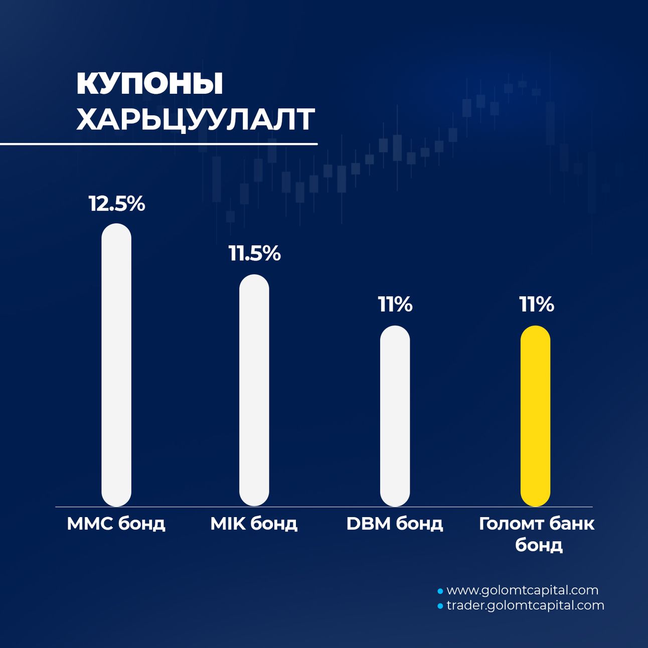 Голомт Капитал ҮЦК нь өнгөрсөн онд бондын зах зээлийн 60 гаруй хувийг дангаар гүйцэтгэсэн амжилтттай ажиллаж байгаа бөгөөд харилцагчийн өгөөжийг 1 ч хоногийн хоцролтгүйгээр үнэт цаасны дансанд нь байршуулан ажилладаг билээ.