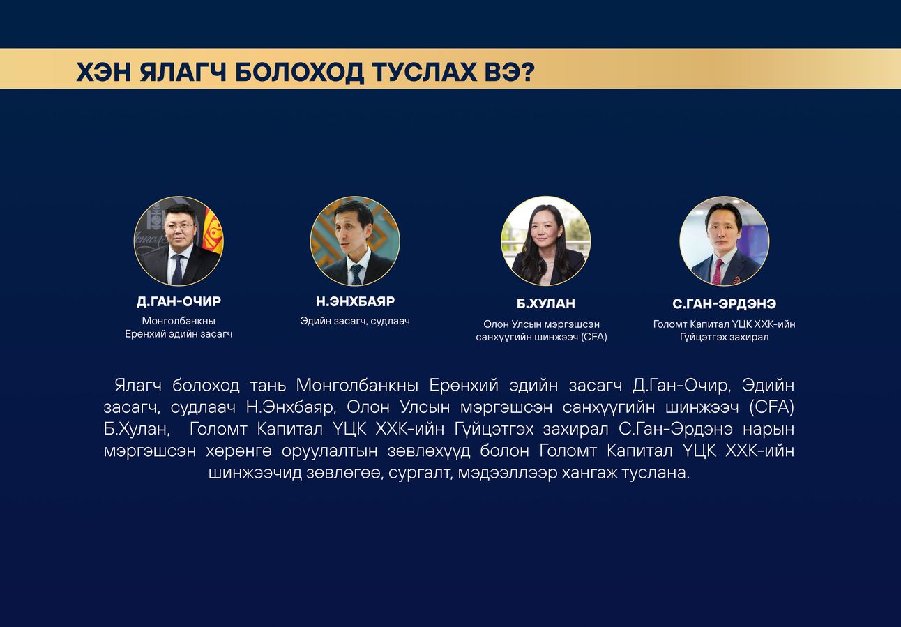 Өөрийгөө нээн илрүүлж, нөөц бололцоогоо танин мэдэж, хөрөнгийн зах зээлийн мэргэшсэн шинжээч, арилжаачдын нэг болохыг хүсч буй хэн бүхэнд Монголын тэргүүлэгч үнэт цаасны компаниудын нэг болох Голомт Капитал ҮЦК ХХК урьж байна.