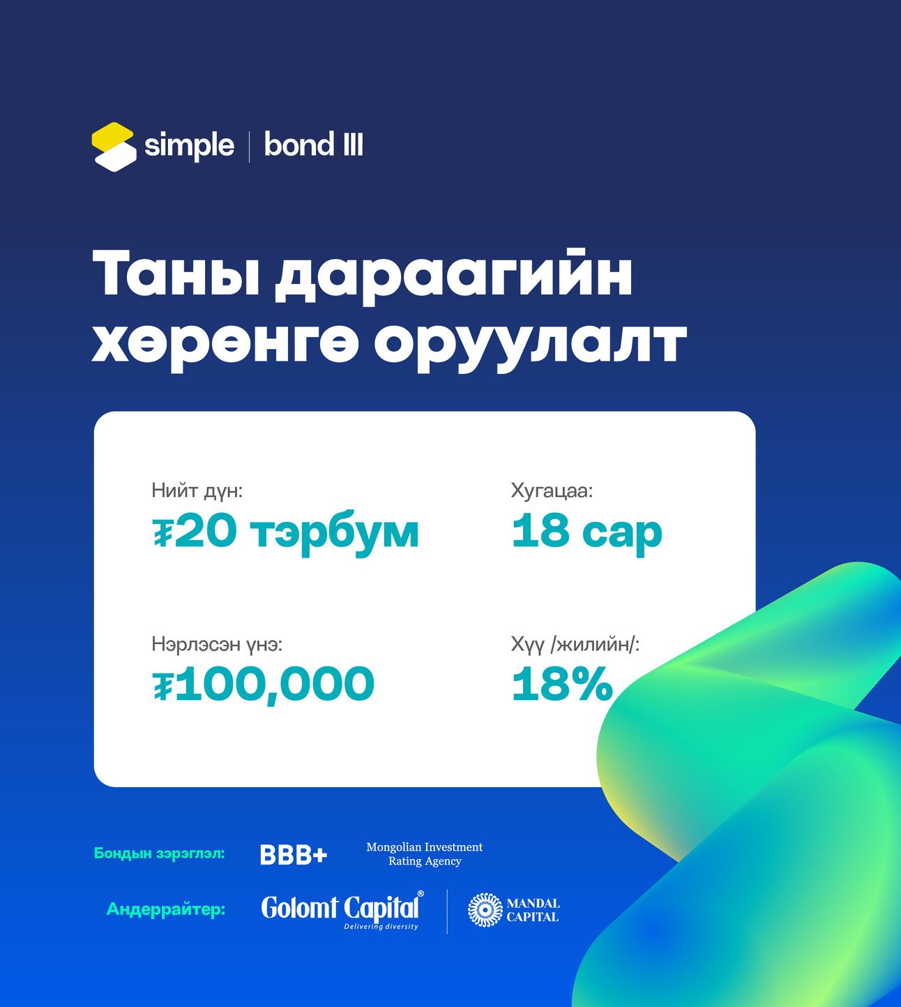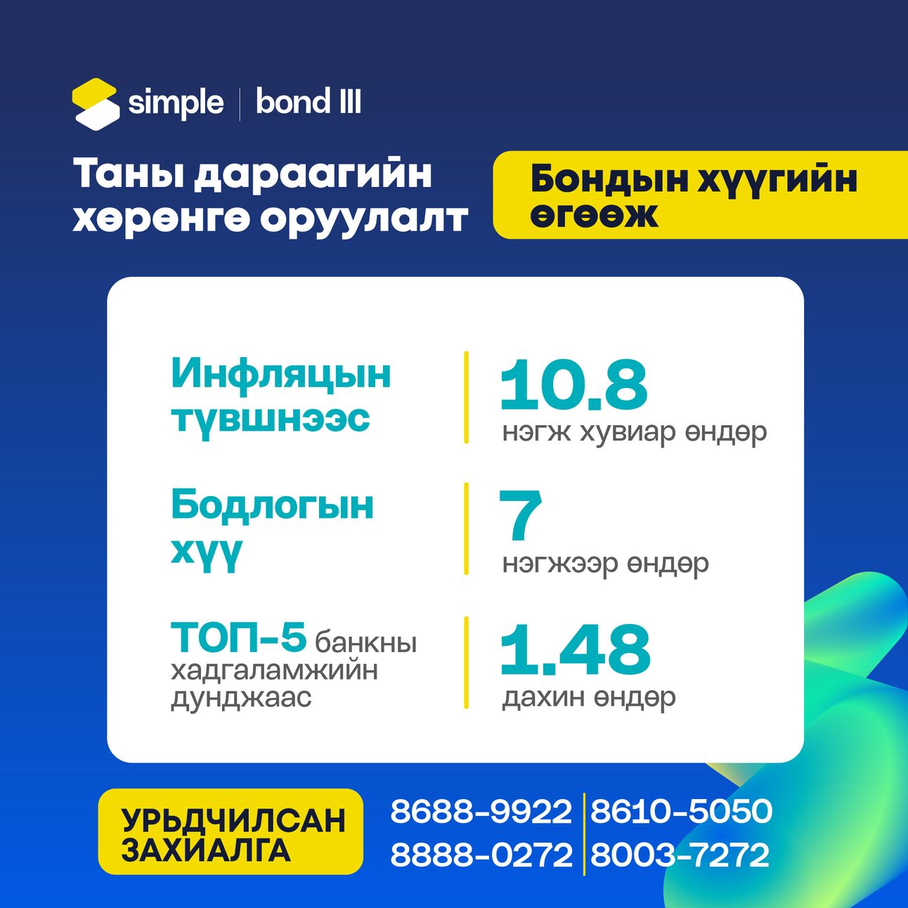 ТАНЫ ДАРААГИЙН ХӨРӨНГӨ ОРУУЛАЛТ Simple III БОНДЫН УРЬДЧИЛСАН ЗАХИАЛГА ЭХЭЛЛЭЭ