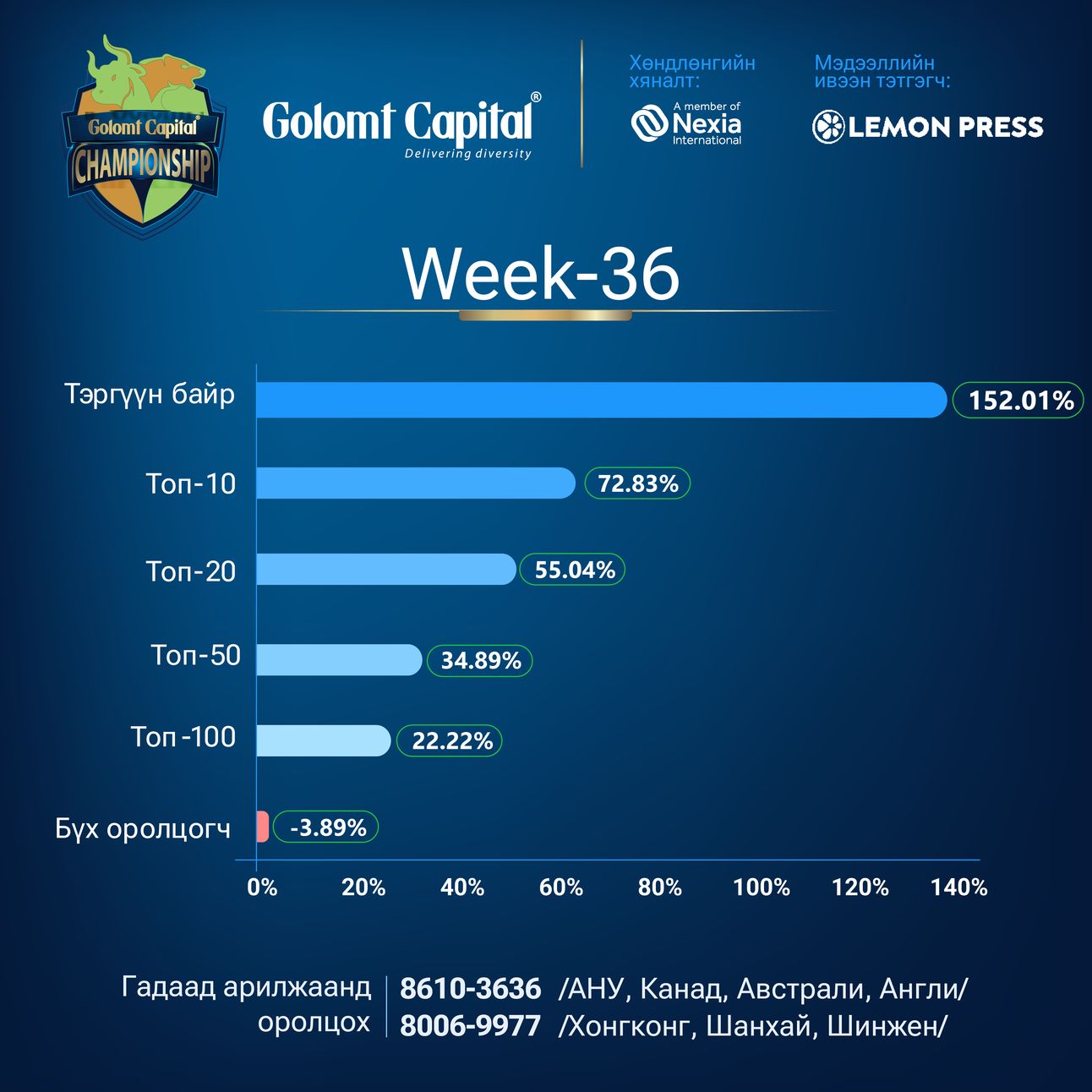 💠“Week 36”-ийн TOP-10 оролцогчийн жагсаалтыг 🥇“Goldie” тэргүүлсээр байна.