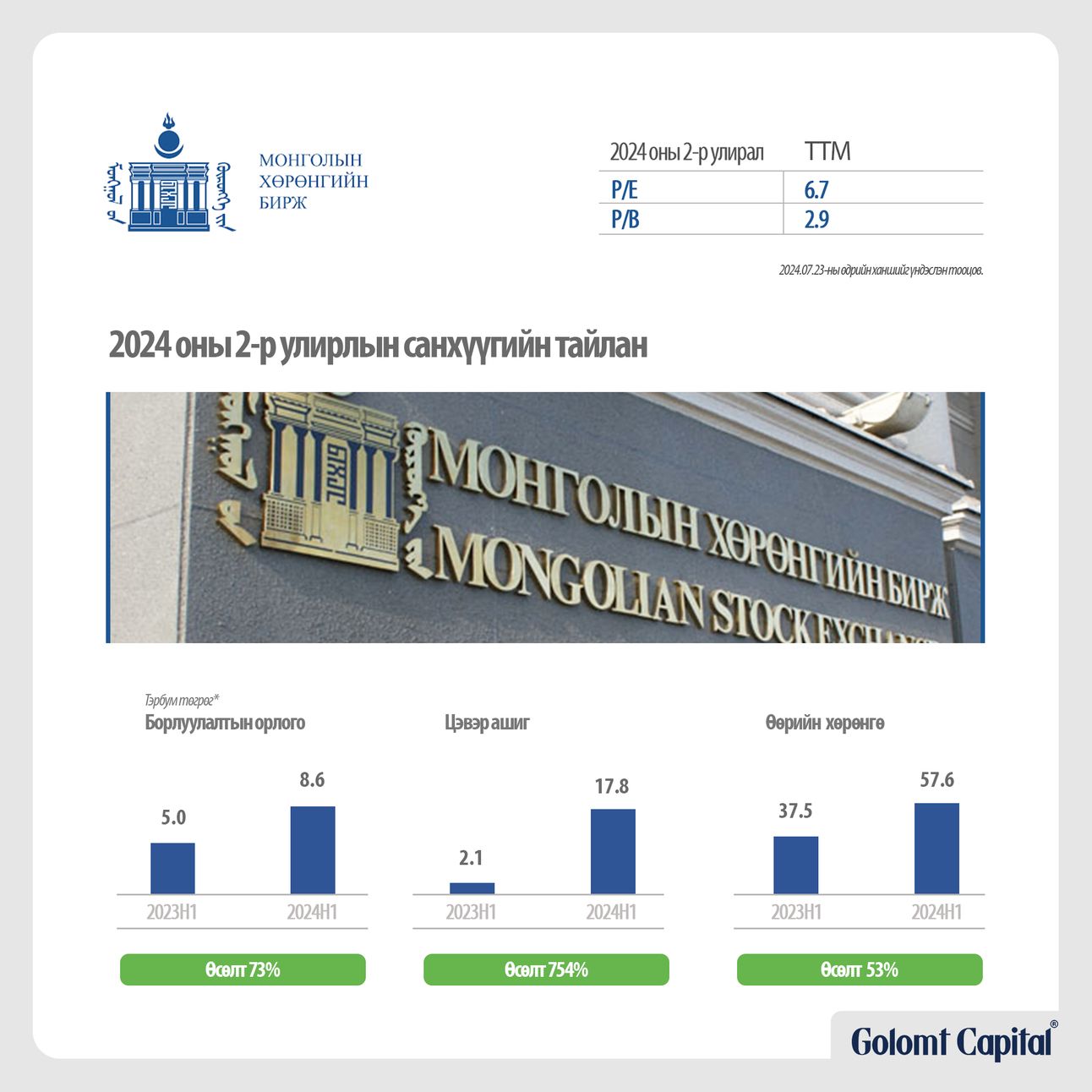 Монголын Хөрөнгийн Бирж ХК-ийн 2024 оны эхний хагас жилийн цэвэр ашиг 17.8 тэрбум төгрөгт хүрлээ