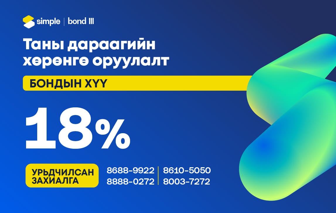 Харин жилийн 18.0% хүүтэй, 18 сарын хугацаатай Simple III бондод хөрөнгө оруулснаар хүүгийн өгөөжөө өндөр түвшинд тогтвортой хадгалах боломжтой.