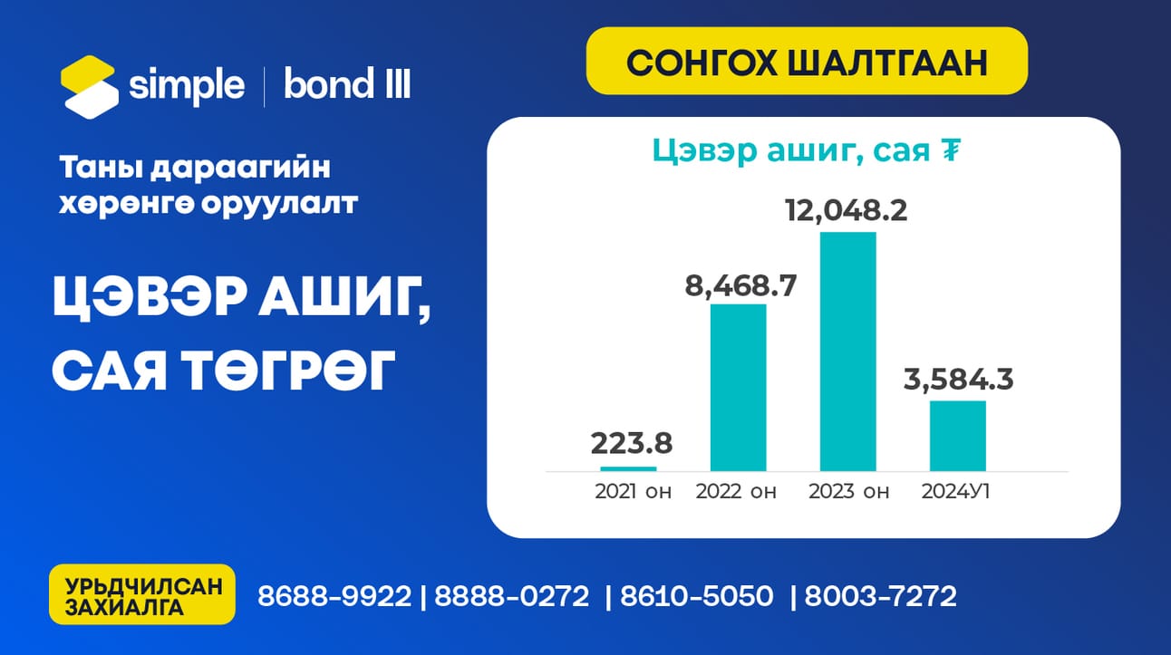 ТАНЫ ДАРААГИЙН ХӨРӨНГӨ ОРУУЛАЛТ SIMPLE III БОНД- ЦЭВЭР АШИГ