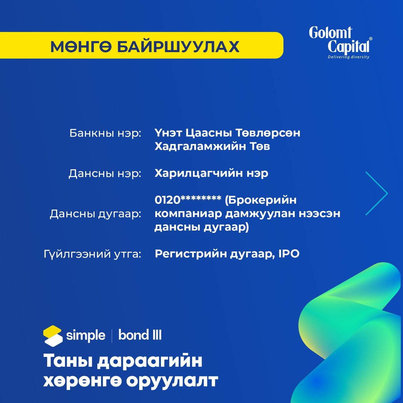 - 📢 ТАНЫ ДАРААГИЙН ХӨРӨНГӨ ОРУУЛАЛТ SIMPLE🟡3 БОНДЫН УРЬДЧИЛСАН ЗАХИАЛГА ЭХЭЛЛЭЭ