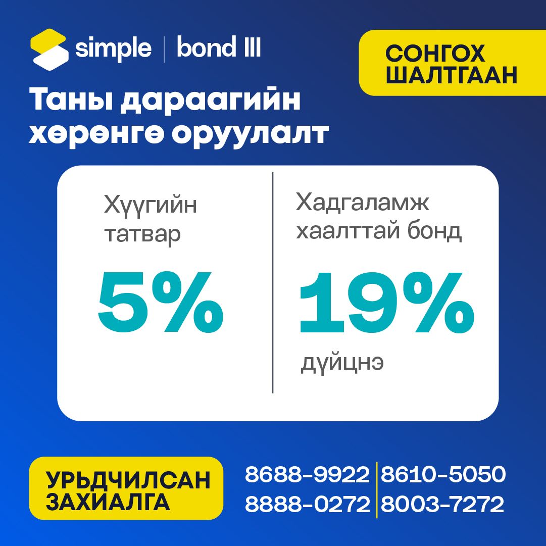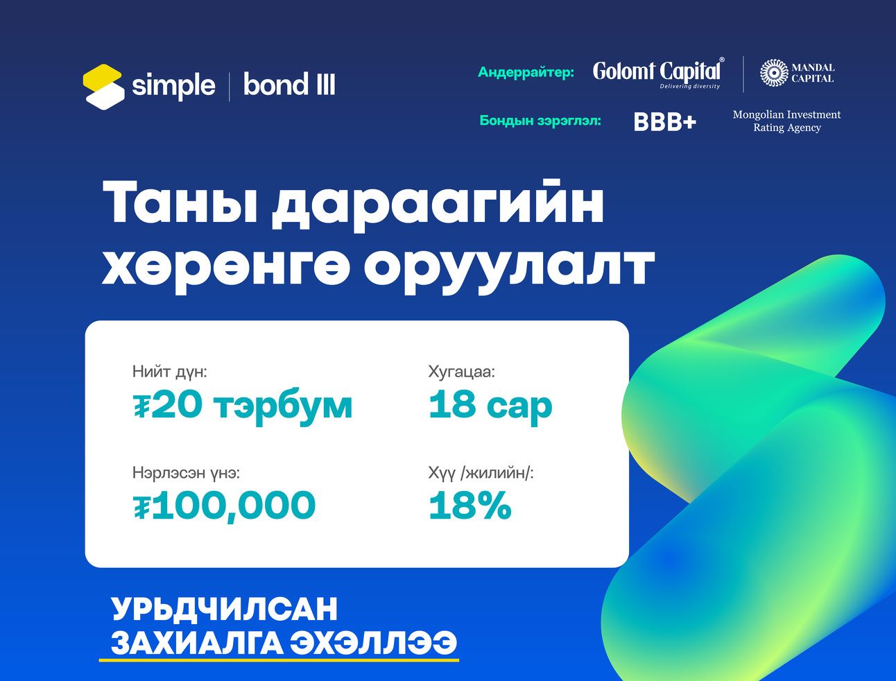 📢 ТАНЫ ДАРААГИЙН ХӨРӨНГӨ ОРУУЛАЛТ SIMPLE🟡3 БОНДЫН УРЬДЧИЛСАН ЗАХИАЛГА ЭХЭЛЛЭЭ